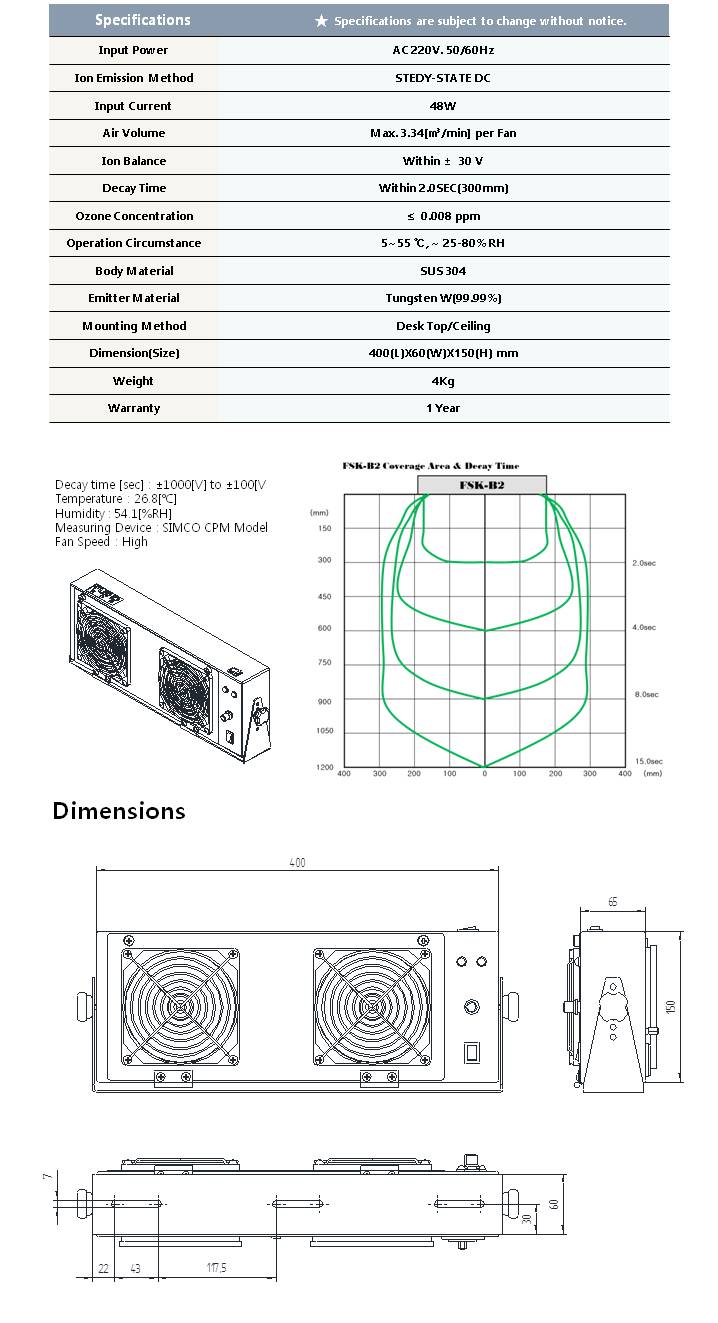 Dc Ion Blower 2±¸ ´Â FAN ¼Óµµ Á¶ÀýÀÌ °¡´ÉÇϸç dzºÎÇÑ À̿·®À» ¹ß»ý½ÃÄÑ